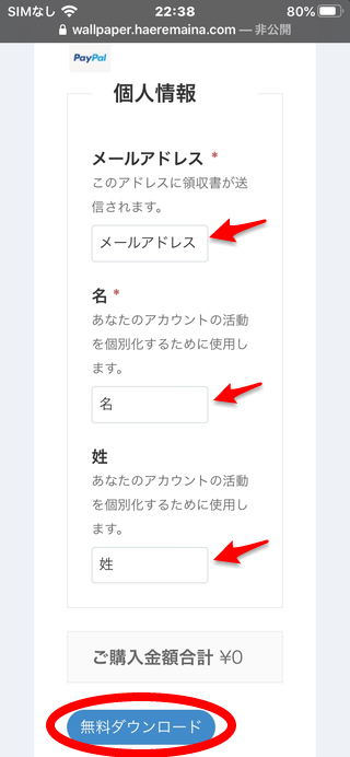 入力したら,「無料ダウンロード」ボタンをタップしてください.