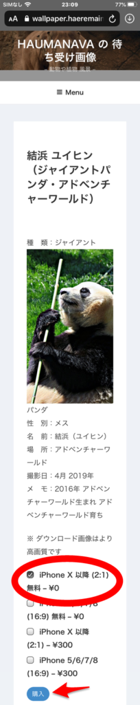 お使いのiPhoneに合わせたサイズの「無料」のものをタップしてチェックマークを付けてください.