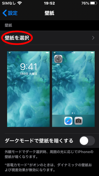 4.「壁紙を選択 >」をタップします